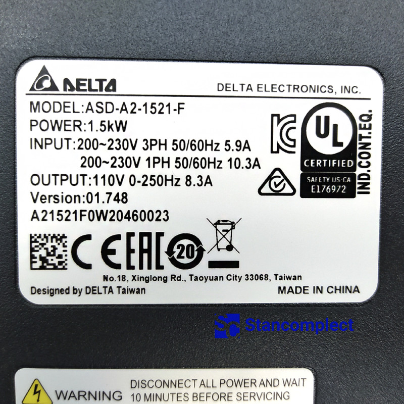 Servo drive ASD-A2-1521-F 220V 1500W 62030020004 for CNC drilling centers KDT.