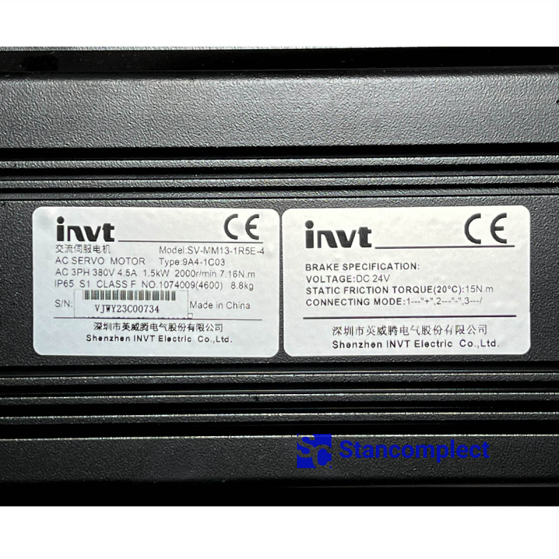 Servo motor INVT SV-MM13-1R5E-4-9A4-1CO3 for KDT CNC drilling centers.