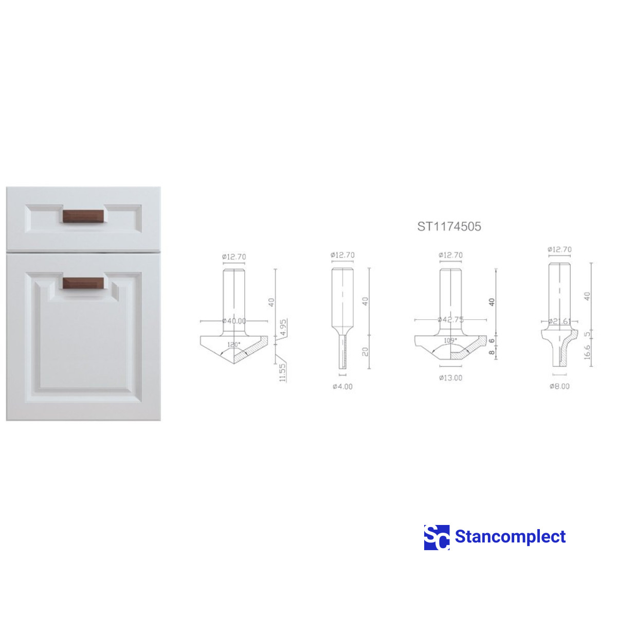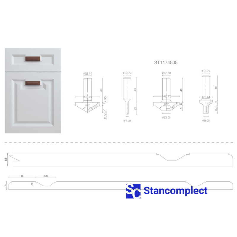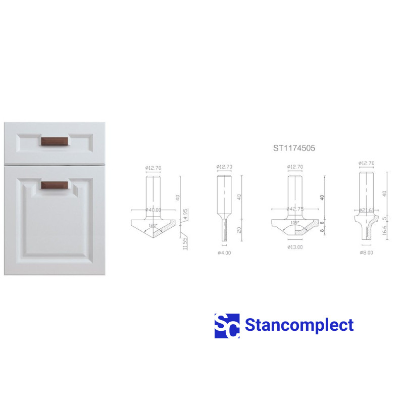 Diamond router bits set for MDF or wood cabinet door 1207 (4 pieces) is designed for processing board materials (chipboard, laminated chipboard, MDF, etc.) uncoated and coated, as well as hardwood and is used in CNC machines.