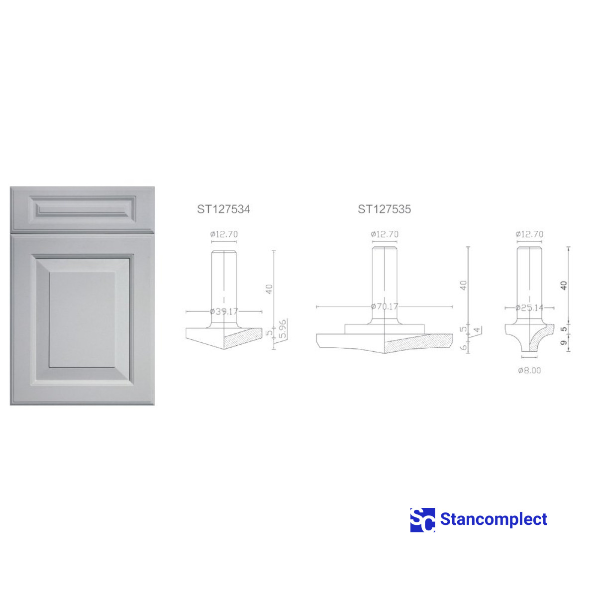 Diamond router bits set for MDF or wood cabinet door 1211 (3 pieces) is designed for processing board materials (chipboard, laminated chipboard, MDF, etc.) uncoated and coated, as well as hardwood and is used in CNC machines.