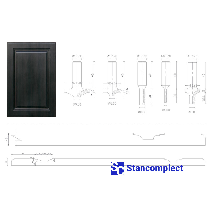 Diamond router bits set for MDF or wood cabinet door 1215 (5 pieces) is designed for processing board materials (chipboard, laminated chipboard, MDF, etc.) uncoated and coated, as well as hardwood and is used in CNC machines.