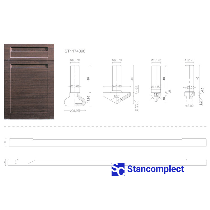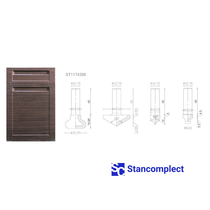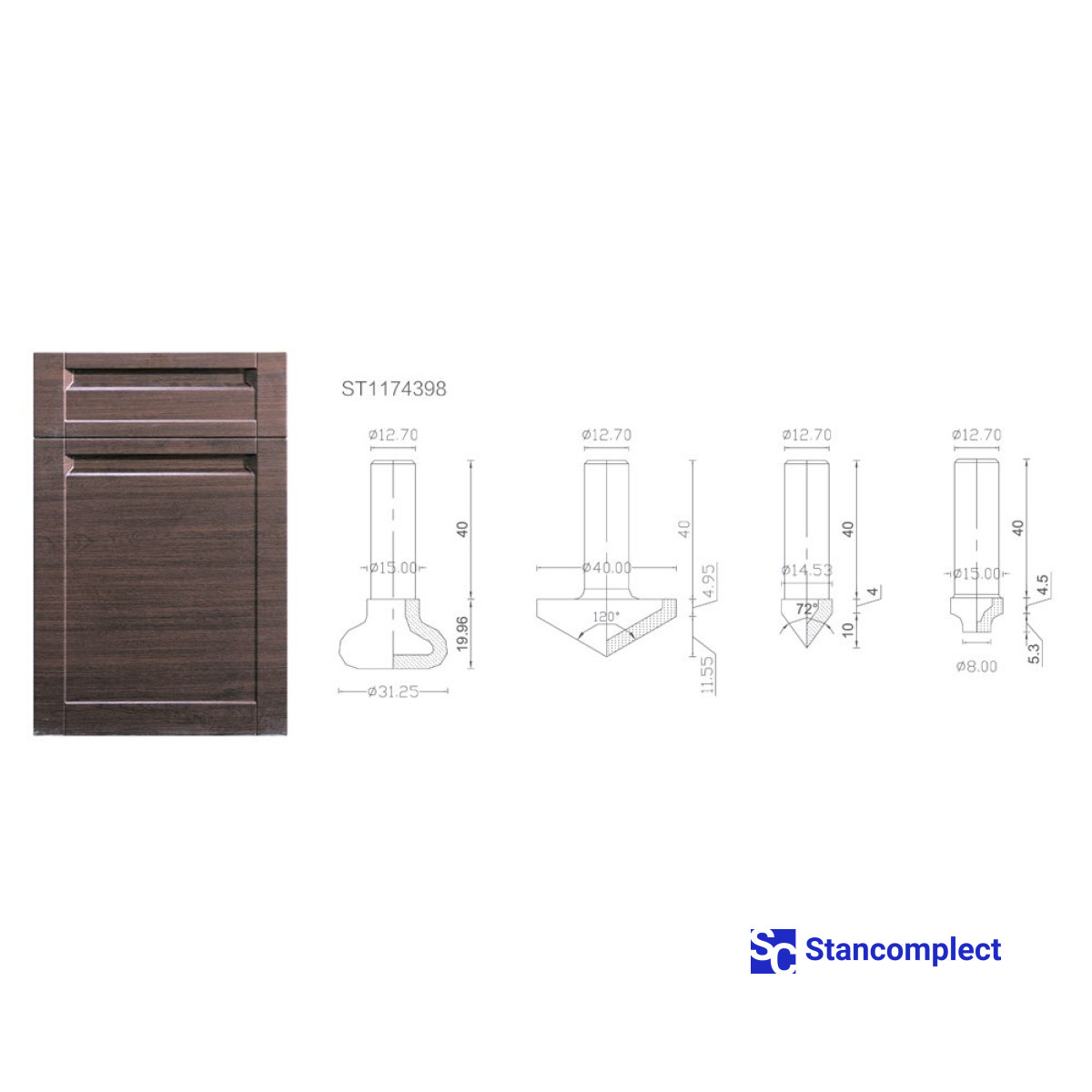 Diamond router bits set for MDF or wood cabinet door 1216 (4 pieces) is designed for processing board materials (chipboard, laminated chipboard, MDF, etc.) uncoated and coated, as well as hardwood and is used in CNC machines.