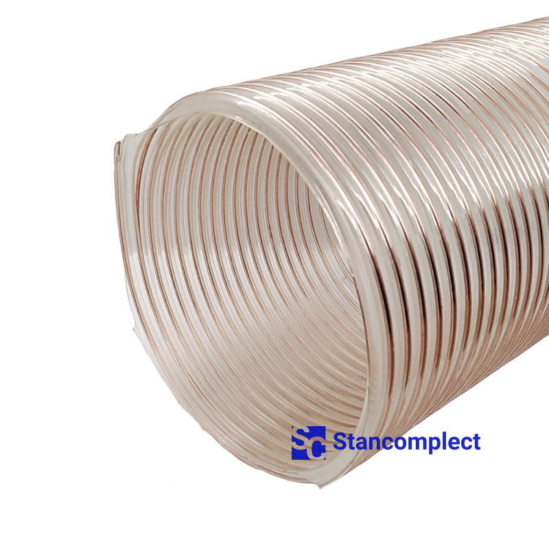 Reinforced polyurethane suction hose D-200 mm, wall thickness 0,6 mm. The suction hose is highly resistant to mechanical and chemical damage and has good flexibility. The suction hose is used in suction systems for the removal of chips, dust and abrasive in almost all areas of industry. Minimal order - 3 meters.