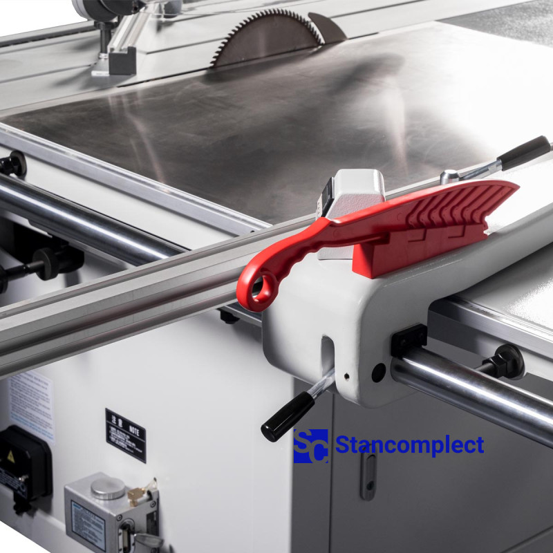The convenient handle of adjustment of a scoring saw on height, allows to carry out fast adjustment of knot.