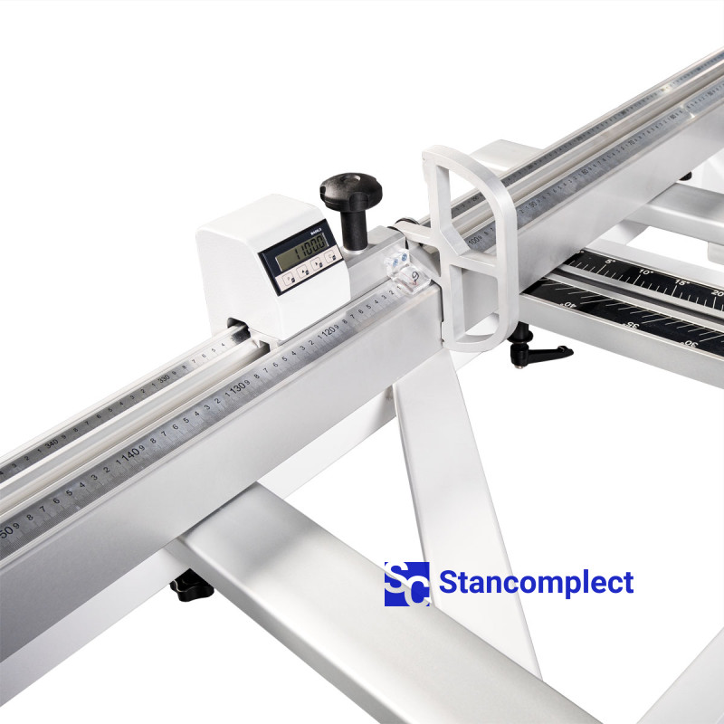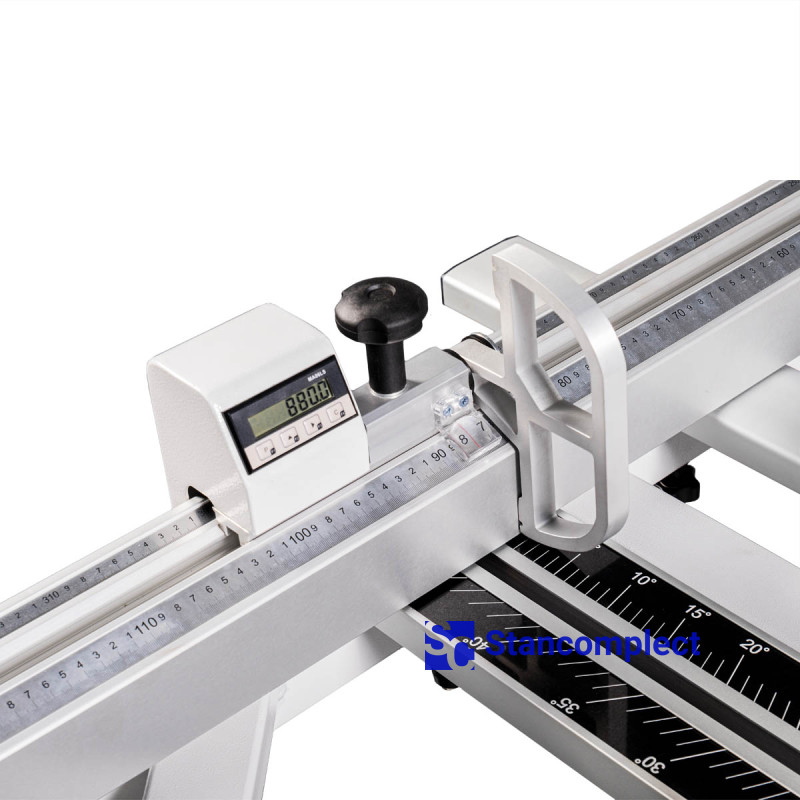 The transverse stop (ruler) is equipped with two folding stops-flags, one of which has an electronic digital display for quick and precise adjustment to the required size.