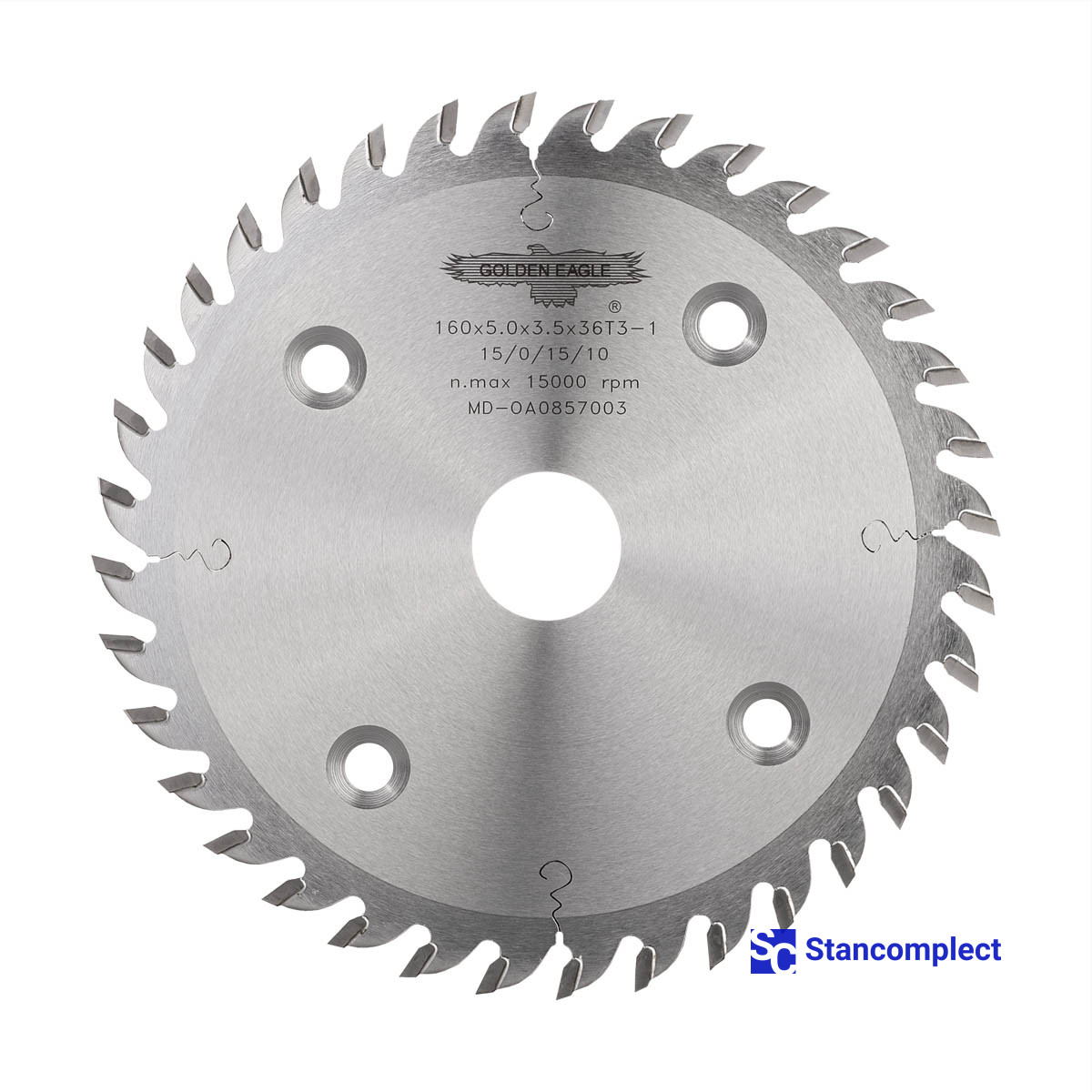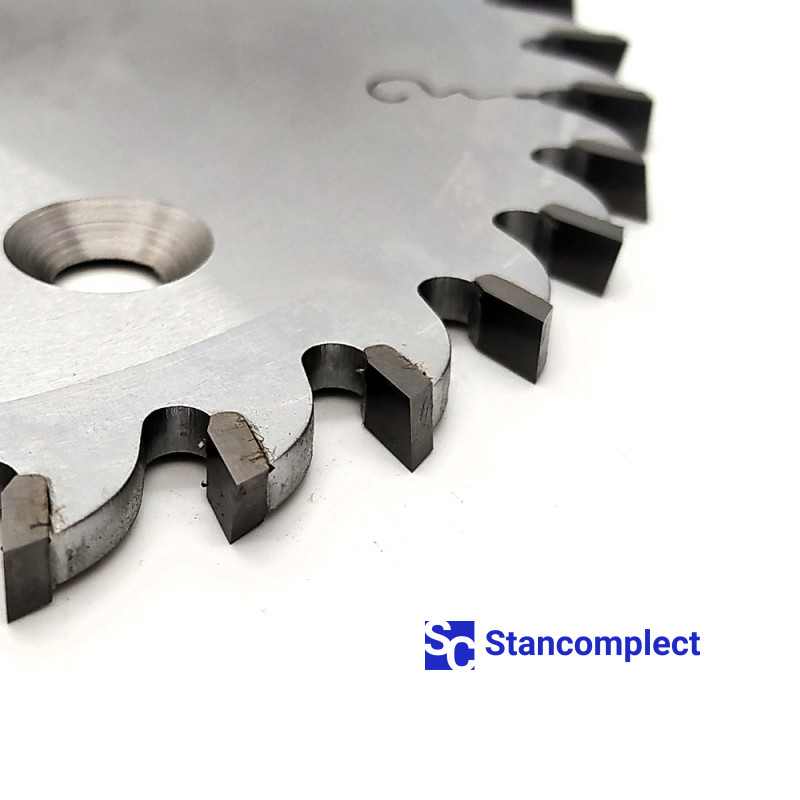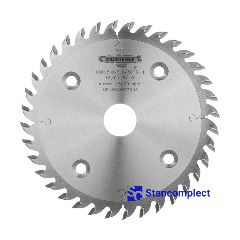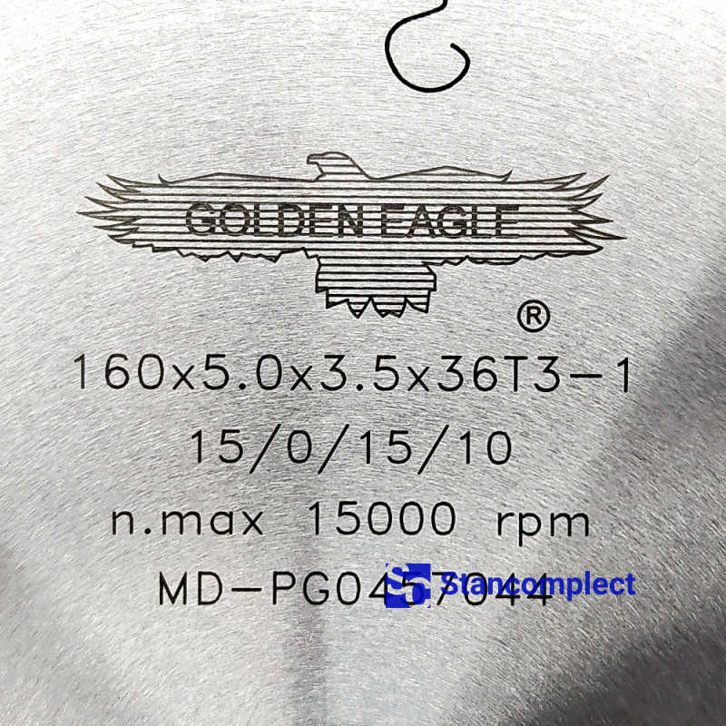 The miter saw blade for tenoners GOLDEN EAGLE 160x5.0x3.5x25.4 36T with carbide tips is designed for fine trimming of bundles of blanks on Chinese-made tenoning machines YongQiang, Weili, Beaver, etc.