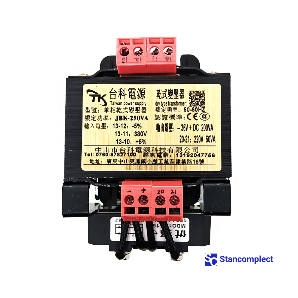 The Stancomplect company offers to buy a JBK5-250VA 380V/220V 50VA 36VDC 200VA 24V transformer for sliding table saws at an affordable price.