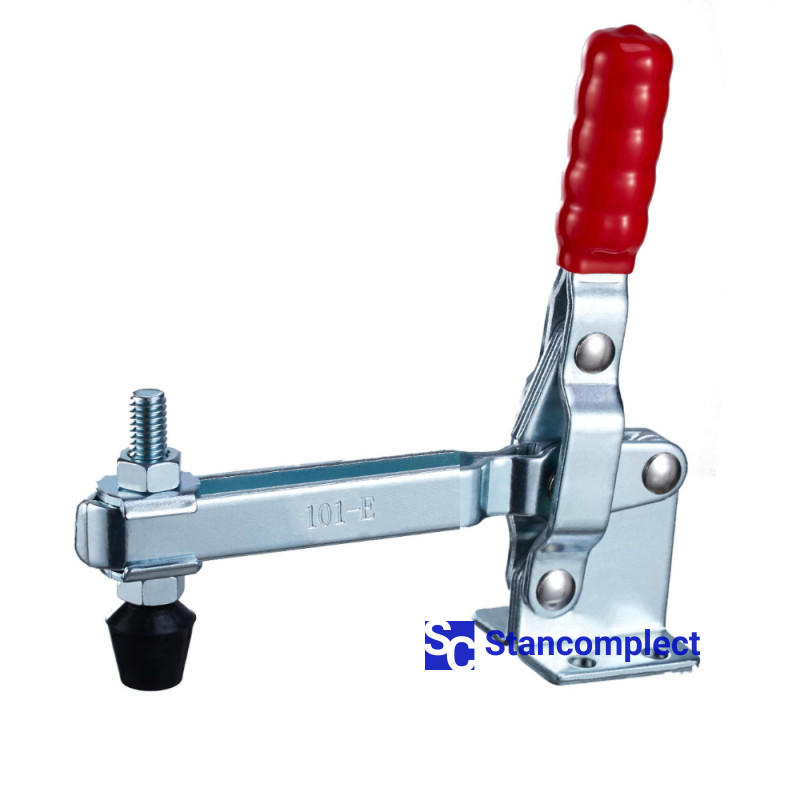 Toggle clamp ST-101-E with a vertical handle for quick fixing of the workpiece. The clamping screw has a rubberized tip. The U-shaped bar allows you to adjust the position of the clamping screw. Quick release vertical toggle clamp ST-101-E is excellent for clamping wood, plastic, glass, where low clamping forces are required.