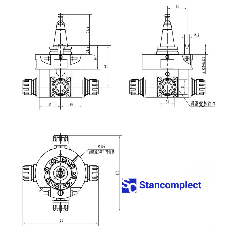 Агрегатна двостороння головка фрезерна 90° KDT DCJSDT для свердлильно-присадних центрів з ЧПК KDT - KD-612K(H)(S)Z(D)(F) / KD-610(H)Z / KD-612K(H)C / KD-612G.