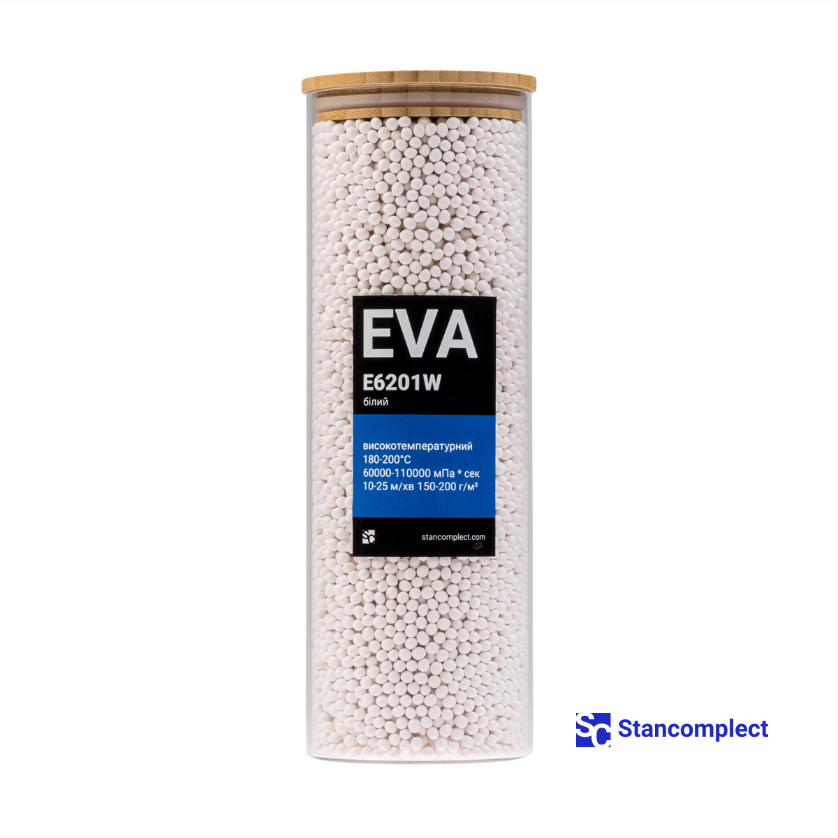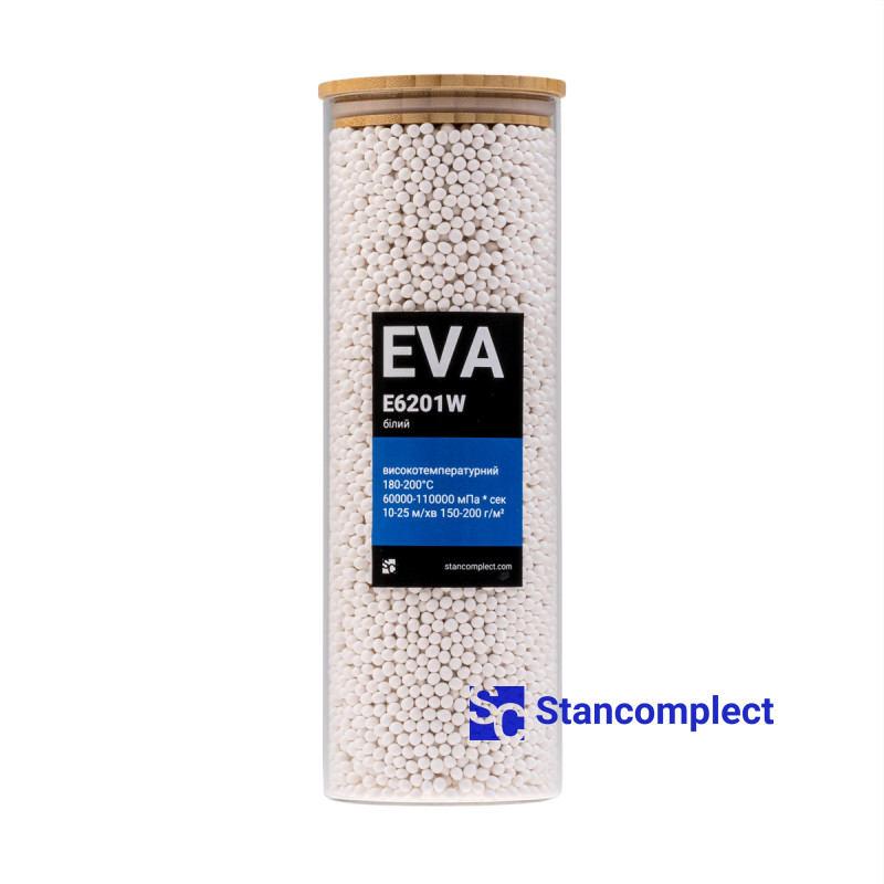 Клей-розплав високотемпературний EVA E6201W білий 1 кг (180-200°С) для крайколичкувальних верстатів.
