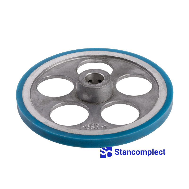 Ролик притискний верстата для ламінації 210x25x15. Ролики використовуються на верстатах з ламінації (окутування) профілів з МДФ, масивної деревини, ДСП, пластику, алюмінію тощо рулонними оздоблювальними матеріалами, такими як, декоративний папір, шпон.