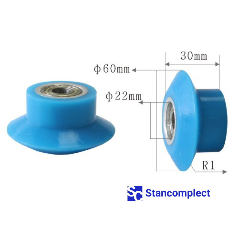 Ролик притискний U-521 розміром 60x22x30xR1 зі штифтом верстата для ламінації. Ролики використовуються на верстатах з ламінації (окутування) профілів із МДФ, масивної деревини, ДСП, пластику, алюмінію тощо рулонними оздоблювальними матеріалами, такими як, декоративний папір, шпон.