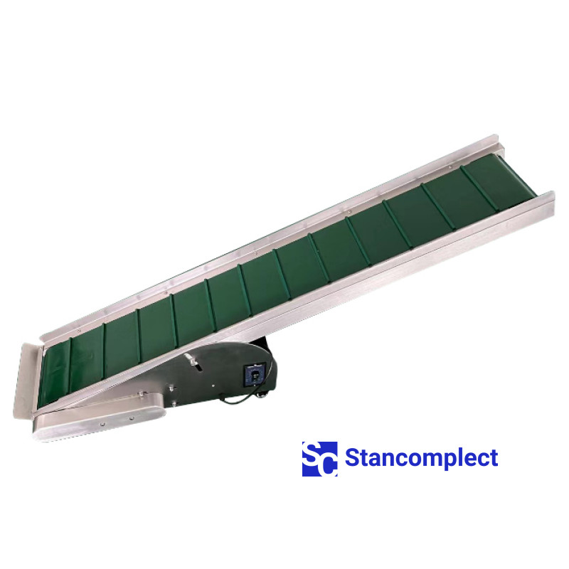 Разгрузочный конвейер предназначен для передачи упакованной фурнитуры из упаковочной машины на контрольные весы. Высота 700 мм.