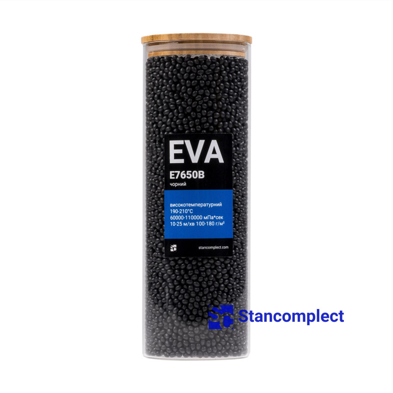 Клей-расплав высокотемпературный EVA E7650B черный 1 кг (190-210°С) для кромкооблицовочных станков.