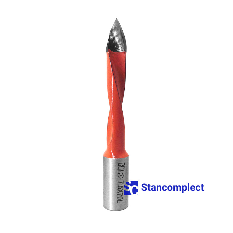 Сверло проходное HD d-7,5 мм, L-70 мм левое с напайным блоком (90 серия). Данное сверло отлично подходит для сверления сквозных отверстий в заготовках из: МДФ, ДСП, ЛДСП, массива, мягкой древесины и фанеры.