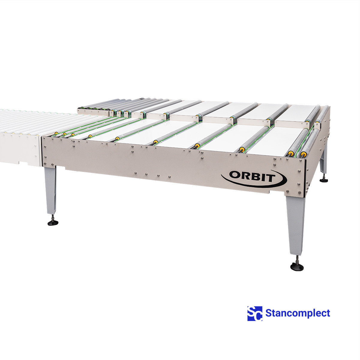 Конвейер роликовый ORBIT – это разумное сочетание HPL и тяжелой стальной конструкции. Конвейер оснащен алюминиевыми роликами с резиновыми втулками на герметичных/тихих подшипниках. Ролики приводятся в движение надежными плоскими ремнями. Каждый конвейер имеет свой 3-фазный приводной двигатель и просто подключается к источнику питания предыдущего конвейера.