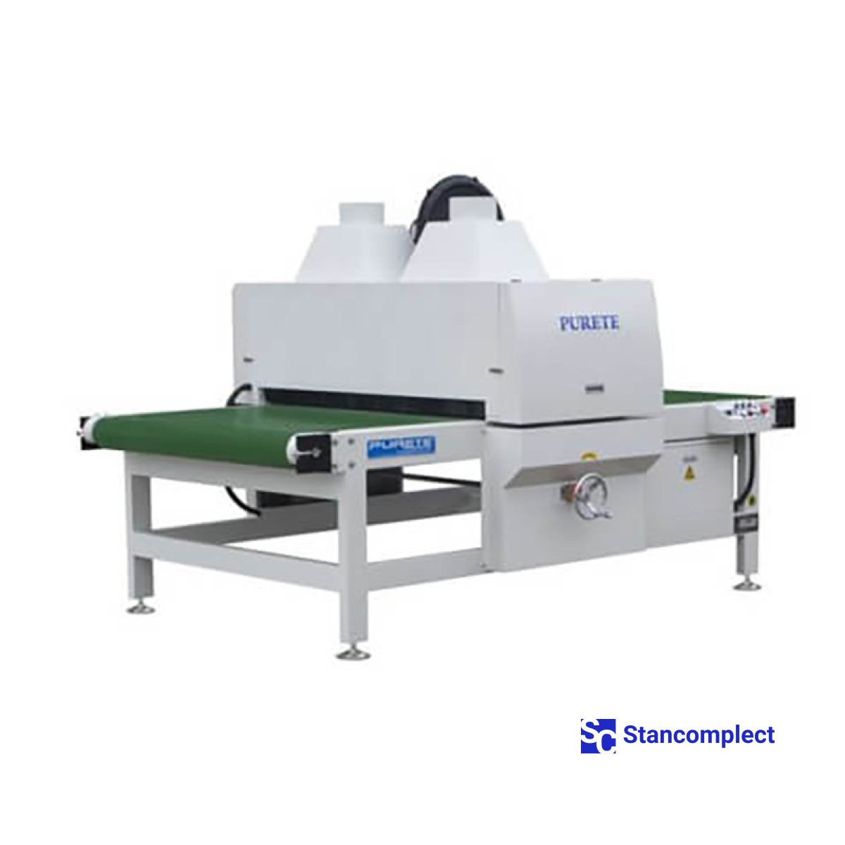Стрічковий конвеєр PURETE PRT-D1313 з двома щітковими роликами для очищення від пилу, а також потужною системою уловлювання пилу, яка може автоматично очищати пил з поверхні матеріалу. Щітковий валик розташований у задній частині обладнання, передня частина машини використовується як конвеєр.